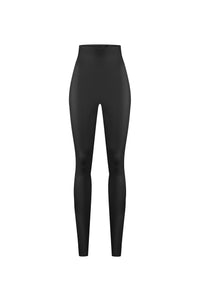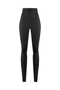 Introducing our perfect black high-waisted leggings, crafted from our exclusive 4D stretch vegan material. Featuring an internal waistband and a seamless zip-free design, these leggings offer a sleek, polished look. Enjoy gentle compression for a sculpted silhouette, effortlessly combining style and comfort.