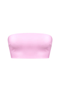 Introducing our pink bandeau top, crafted from our signature butter soft 4D stretch vegan leather. Created for a sleek bodycon fit, it gracefully hugs your curves, accentuating your features for a striking presence no matter the occasion.