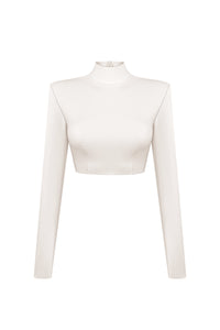 Our ecru long sleeve turtleneck cropped top combines style and sustainability. Made from our signature 4D stretch vegan leather, it transitions seamlessly from day to night. Pair it with high-waisted trousers or layer under a statement jacket for a bold, eco-conscious touch to any outfit.
