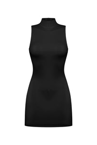 Experience the epitome of style and sustainability with our black sleeveless mini dress. Crafted from our signature 4D stretch vegan leather, this dress exudes modern elegance. The sleeveless design accentuates your shoulders and arms with a sculpting effect that exudes confidence and allure.