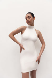 Vegan Leather Sculpting Mini Dress Ecru