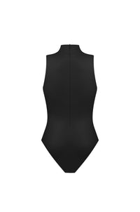 Our black Sleeveless Turtleneck Bodysuit is a seamless blend of style and comfort. Crafted from our signature 4D stretch vegan leather, this bodysuit offers great flexibility and a sleek aesthetic. Designed with attention to detail, an invisible zip at the back ensures effortless wearability. The light compression effect carefully enhances your silhouette.